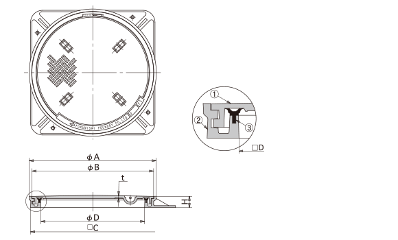 | 型式 | D | A | B | C | t | H | 把手 | 蓋kg | 合計重量kg |