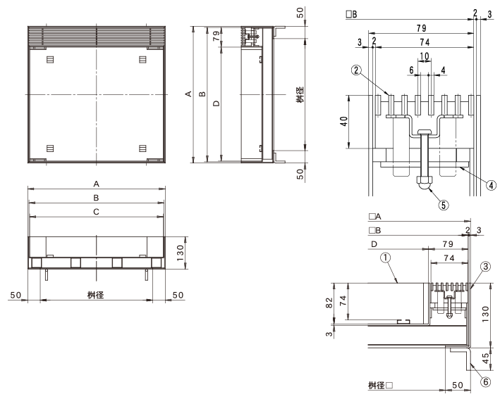 | 型式 | 桝径 | A | B | C | D | 蓋kg | 合計重量kg | 充填時蓋kg |